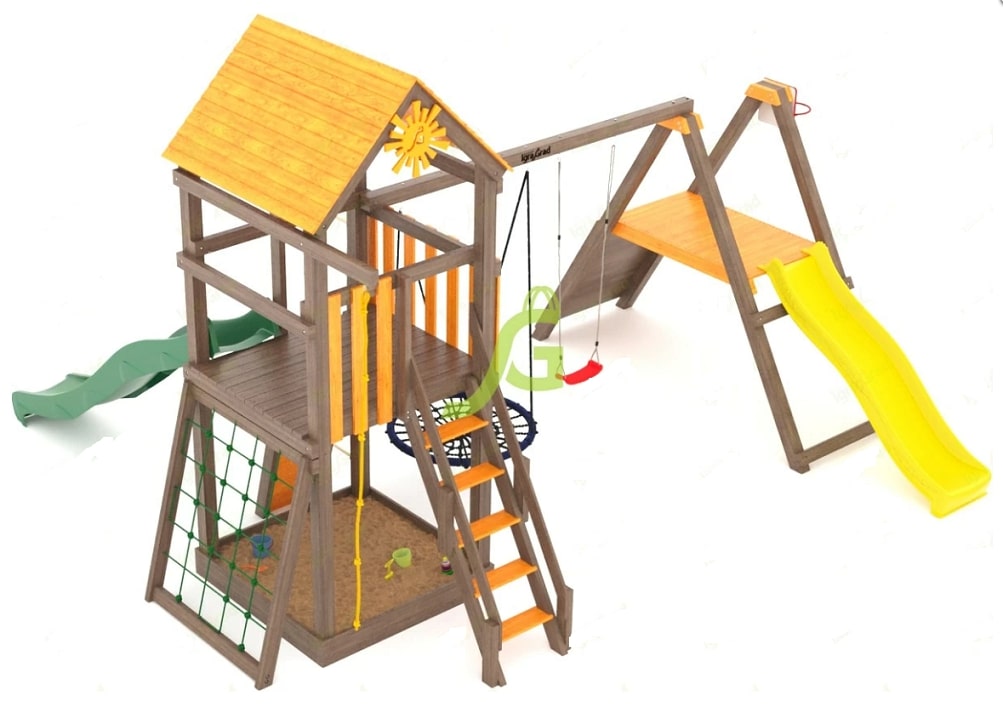 Детская игровая площадка "Панда Фани Gride мод.1" - надёжный спутник для весёлых и активных игр на свежем воздухе. Подарите своему ребёнку возможность развлечься и продуктивно провести время, укрепляя иммунитет и физические навыки.Гармонично расположившись на вашей даче или приусадебном участке, детская деревянная площадка подарит истинный восторг маленьким непоседам, которые предпочитают активный и разнообразный отдых. Вы при этом можете не беспокоиться за безопасность ребёнка, ведь все игры происходят под вашим контролем, на закрытой территории.