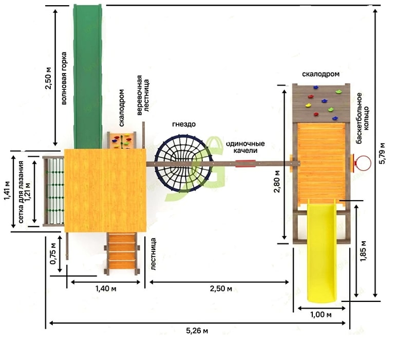 - Длина качельной балки: 2,80 м