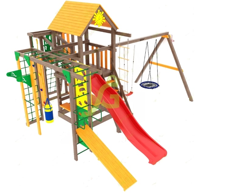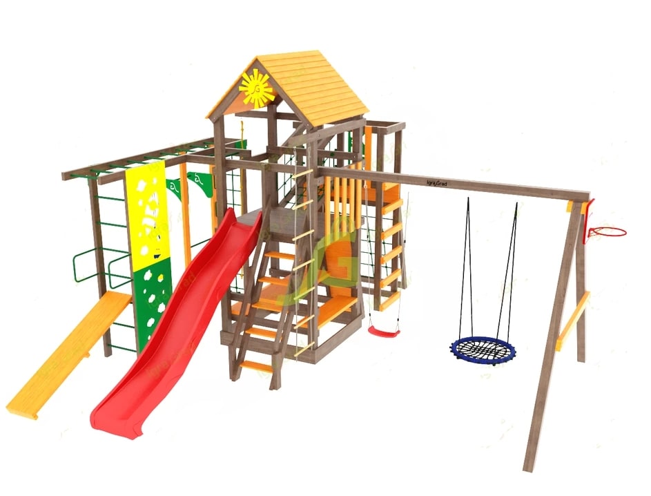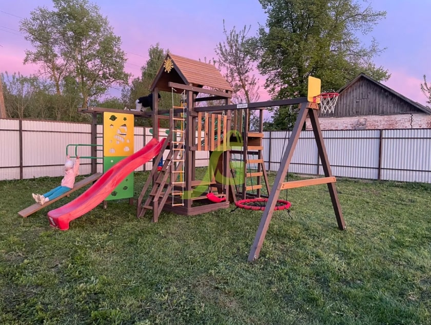 Обращаем Ваше внимание, что цвет установленной детской площадки может отличаться от представленных изображений на сайте. Специфика окраски нетоксичными пропитками допускает отклонения в цветовой гамме отгружаемых изделий вследствие различного цвета натурального природного сырья и естественных компонентов, используемых для производства площадок.