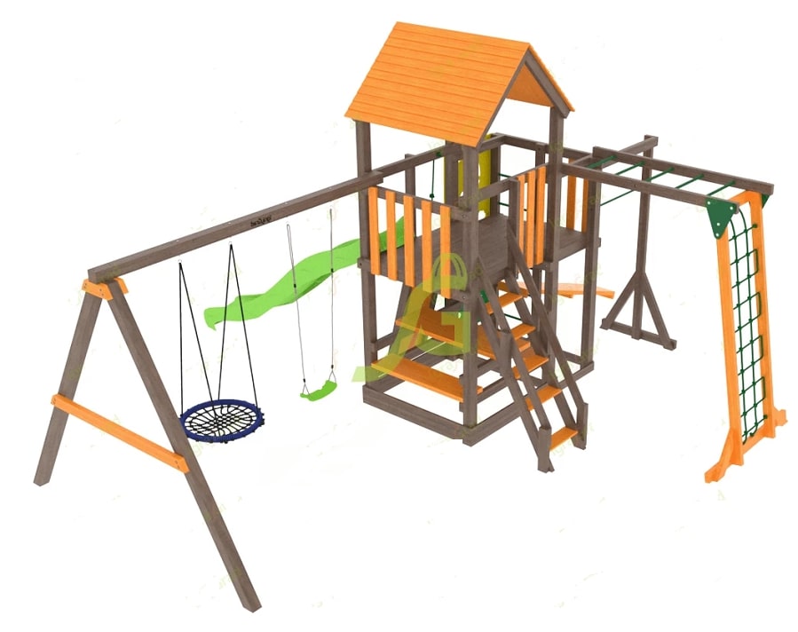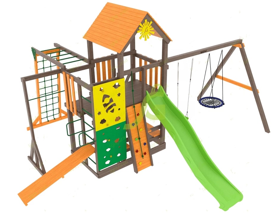 Обращаем Ваше внимание, что цвет установленной детской площадки может отличаться от представленных изображений на сайте. Специфика окраски нетоксичными пропитками допускает отклонения в цветовой гамме отгружаемых изделий вследствие различного цвета натурального природного сырья и естественных компонентов, используемых для производства площадок.