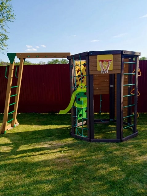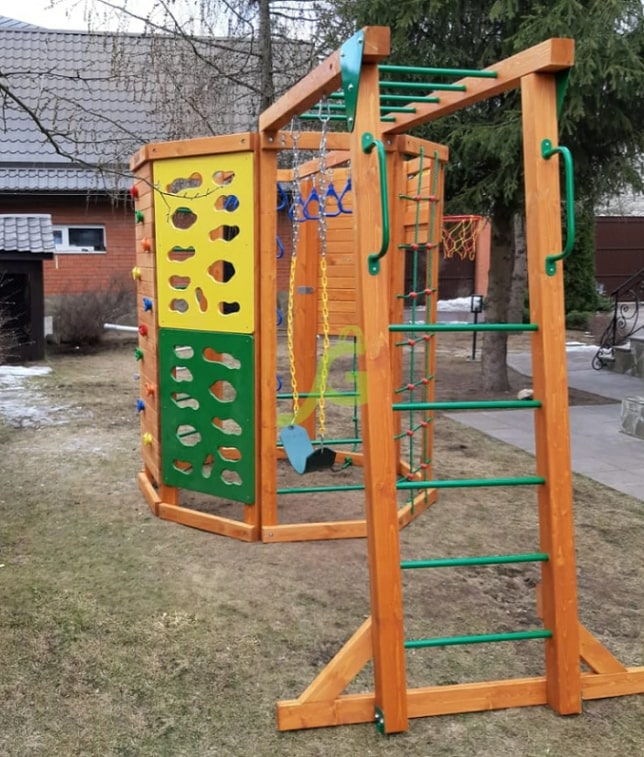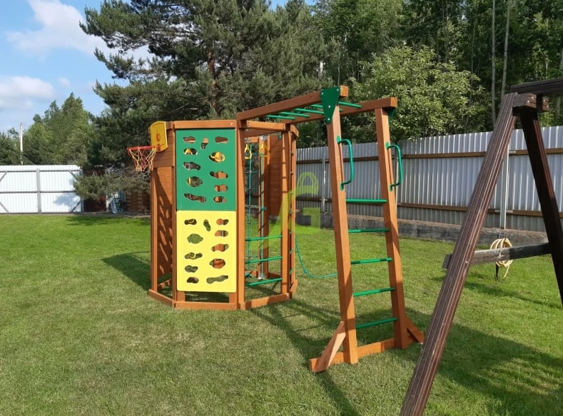 Обращаем Ваше внимание, что цвет установленной детской площадки может отличаться от представленных изображений на сайте. Специфика окраски нетоксичными пропитками допускает отклонения в цветовой гамме отгружаемых изделий вследствие различного цвета натурального природного сырья и естественных компонентов, используемых для производства площадок.