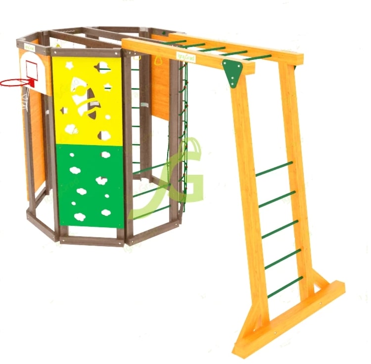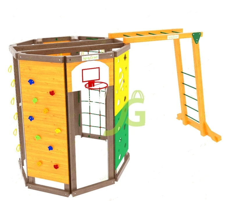 Детство - важный период, когда у детей развиваются кости и суставы. В это время необходимо много гулять, бегать, прыгать – проводить время весело и активно! Для этого совсем необязательно записывать ребёнка на всевозможные секции и кружки, достаточно купить спортивный комплекс IgraGrad "WorkOut с рукоходом".Наша компания занимается продажей детских оздоровительных комплексов много лет. Мы предлагаем качественный товар, демократичные цены и получаем в ответ отзывы довольных покупателей. Вашему вниманию предлагается небольшой, но функциональный спортивный комплекс, имеющий в своём арсенале все необходимые атрибуты для физического развития ребёнка: рукоход, баскетбольное кольцо, «обезьянью тропу», скалодром, элемент шведской стенки, верёвочную лестницу, стену альпиниста, канат.