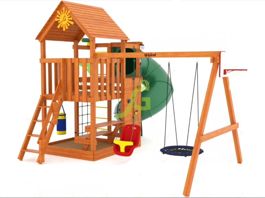 Обращаем Ваше внимание, что цвет установленной детской площадки может отличаться от представленных изображений на сайте. Специфика окраски нетоксичными пропитками допускает отклонения в цветовой гамме отгружаемых изделий вследствие различного цвета натурального природного сырья и естественных компонентов, используемых для производства площадок.
