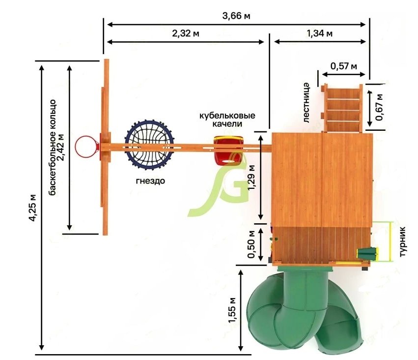 Внешний вид и конструкция элементов детской площадки могут незначительно отличаться от изображений на сайте в связи с возможными доработками со стороны производителя, направленными на повышение качества и безопасности продукции.