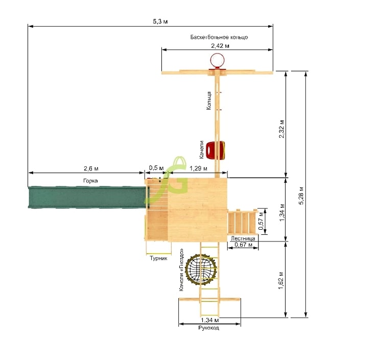 Внешний вид и конструкция элементов детской площадки могут незначительно отличаться от изображений на сайте в связи с возможными доработками со стороны производителя, направленными на повышение качества и безопасности продукции.