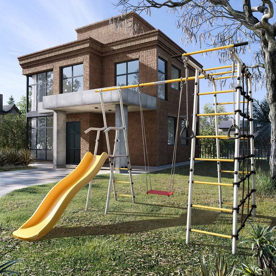 Все навесное оборудование выполнено из атмосферостойких материалов — в летнее время их можно не убирать в дом после занятий. Приключения обещают быть захватывающими!