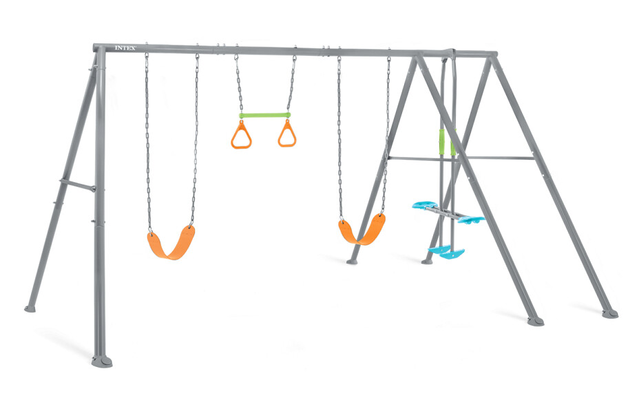 Игровой комплекс Intex 44131 изготовлены из качественного композитного материала, металл и пластик.