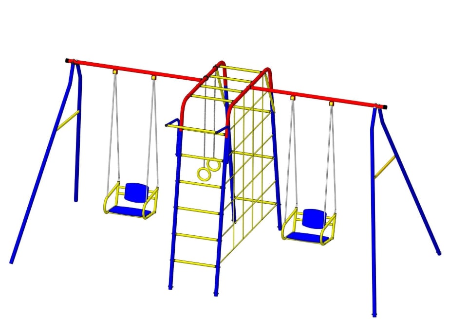 ДСК Юла — идеальное решение при выборе универсального спортивного комплекса, металлическая конструкция которого позволяет выполнять физические упражнения как детям, так и их родителям. Спортивный комплекс «Юла» предназначен для выполнения различных спортивных упражнений и игр на открытой площадке детей в возрасте от 3-х до 12 лет, с общим весом до 100 кг.В комплект входит: турник, кольца, качели на цепи со спинкой-2шт,приставка для второй качели, сетка для лазания.