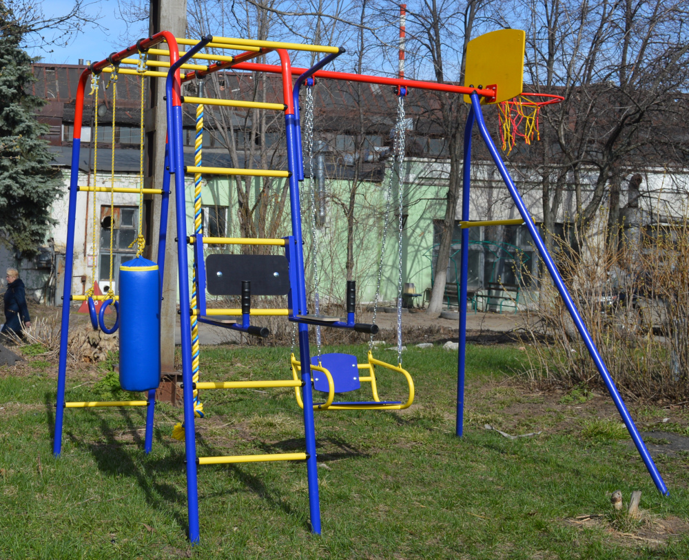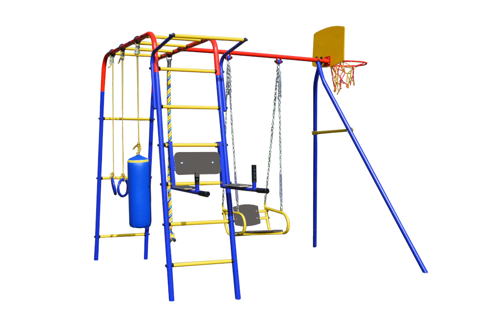 ДСК Юла Макси — идеальное решение при выборе универсального спортивного комплекса, металлическая конструкция которого позволяет выполнять физические упражнения как детям, так и их родителям. Спортивный комплекс «Юла» предназначен для выполнения различных спортивных упражнений и игр на открытой площадке детей в возрасте от 3-х до 12 лет, с общим весом до 100 кг.Комплектация: канат, кольца, груша, качели, навес для пресса, баскетбольный щит.