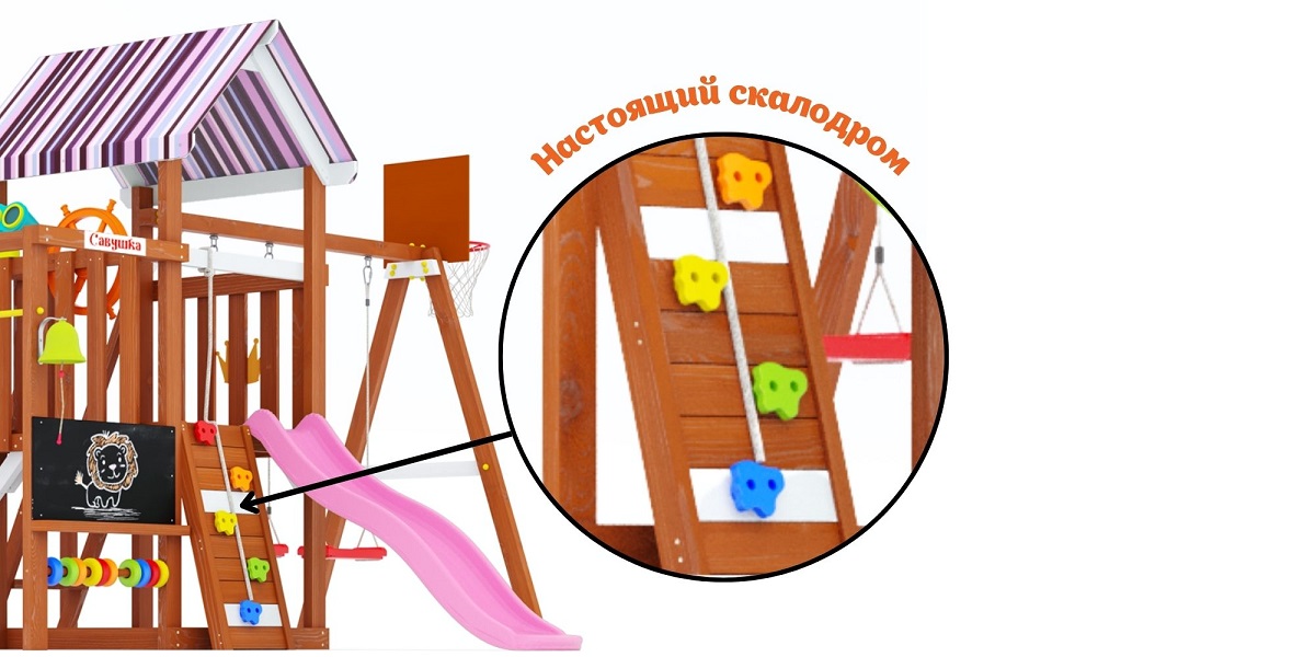 Горка, Домик (замок), Качели, Скалодром |