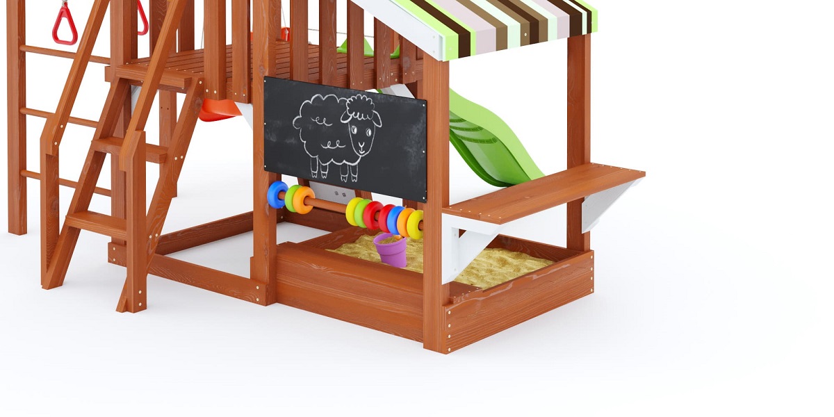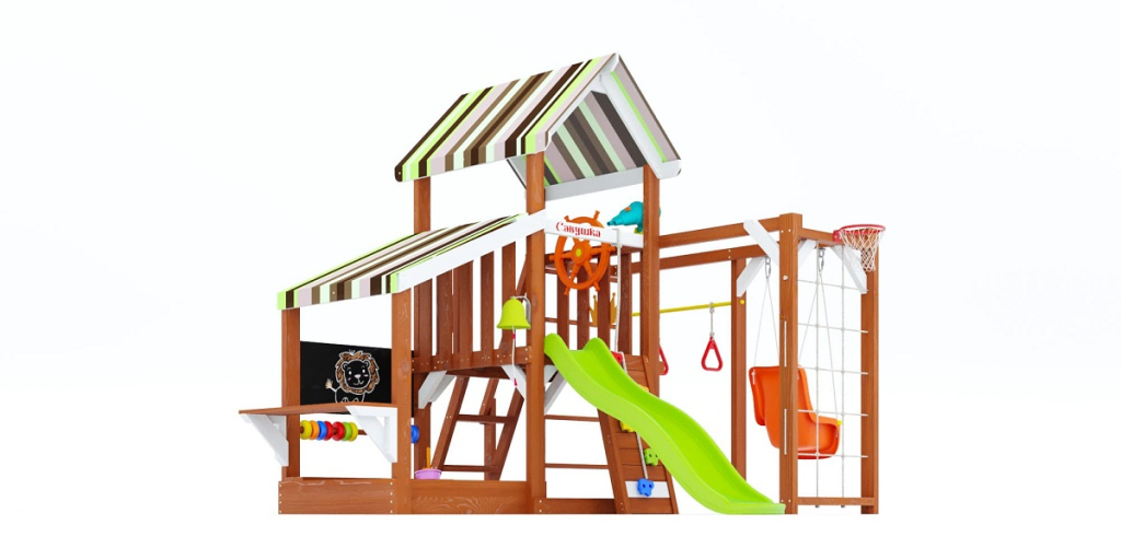 Подходит для размещения на небольших участках. Отличное решение, чтобы купить детскую площадку для дома или дачи, где сочетаются спорт, игра и обучение.