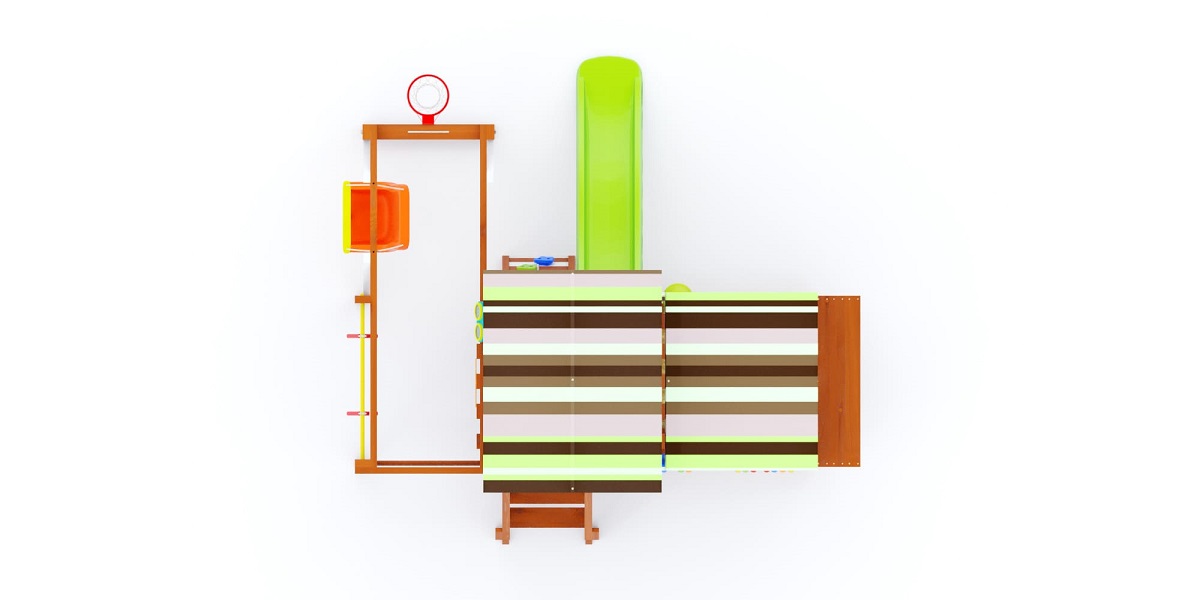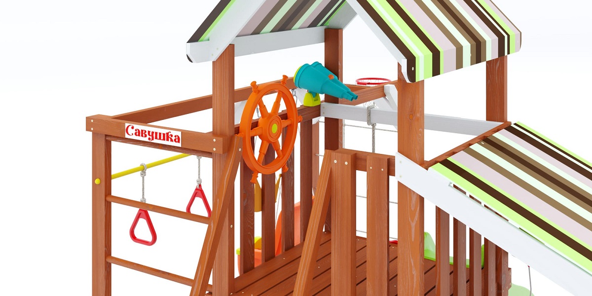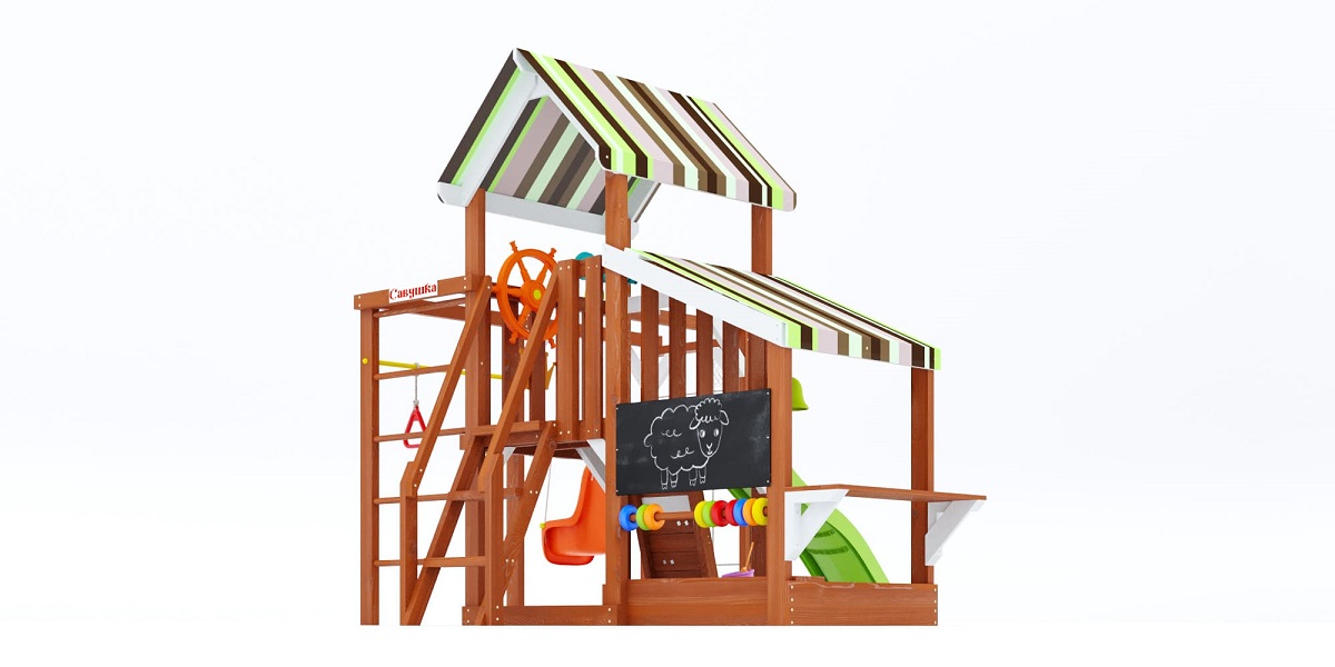 — Цвет крыши и горки: синий или салатовый