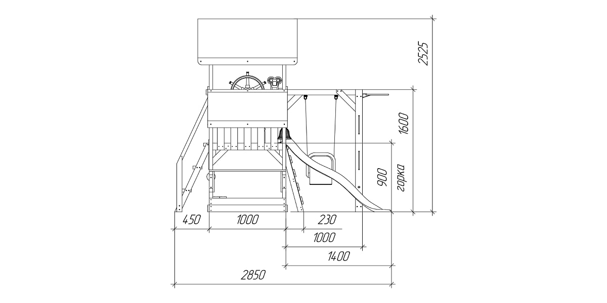 - Высота платформы для спуска с горки – 0,9 м