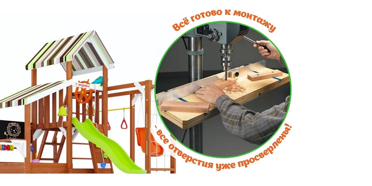 - Дерево обработано: Лакокрасочным покрытием Sherwin-Williams (Шервин-Вильямс) с разрешающим сертификатом для покрытия детских игровых площадок