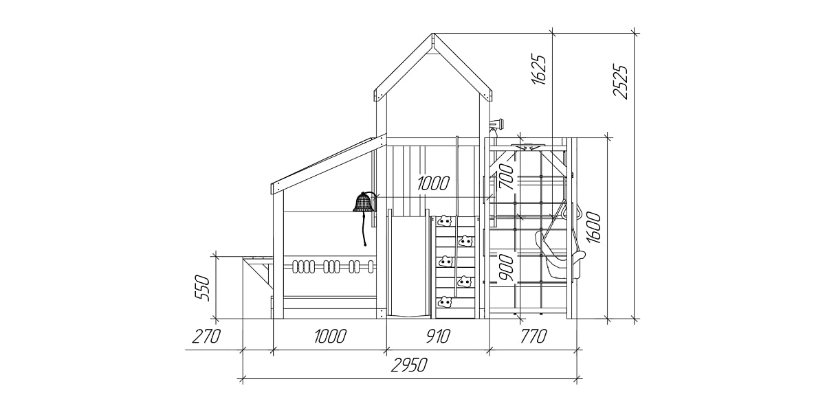 Горка, Домик (замок), Качели, Скалодром |