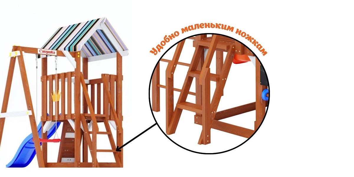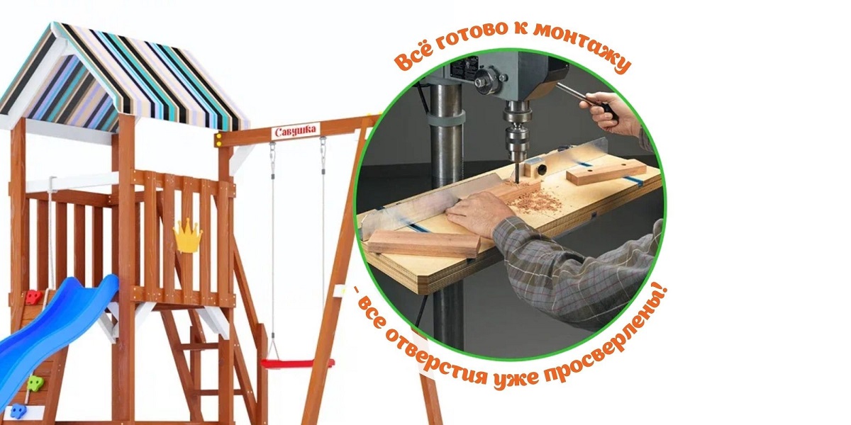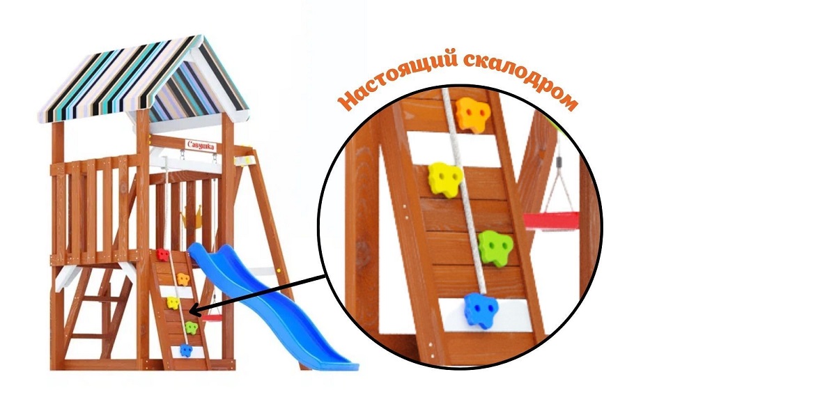 — Широкая горка, качественная древесина, сертифицированные материалы
