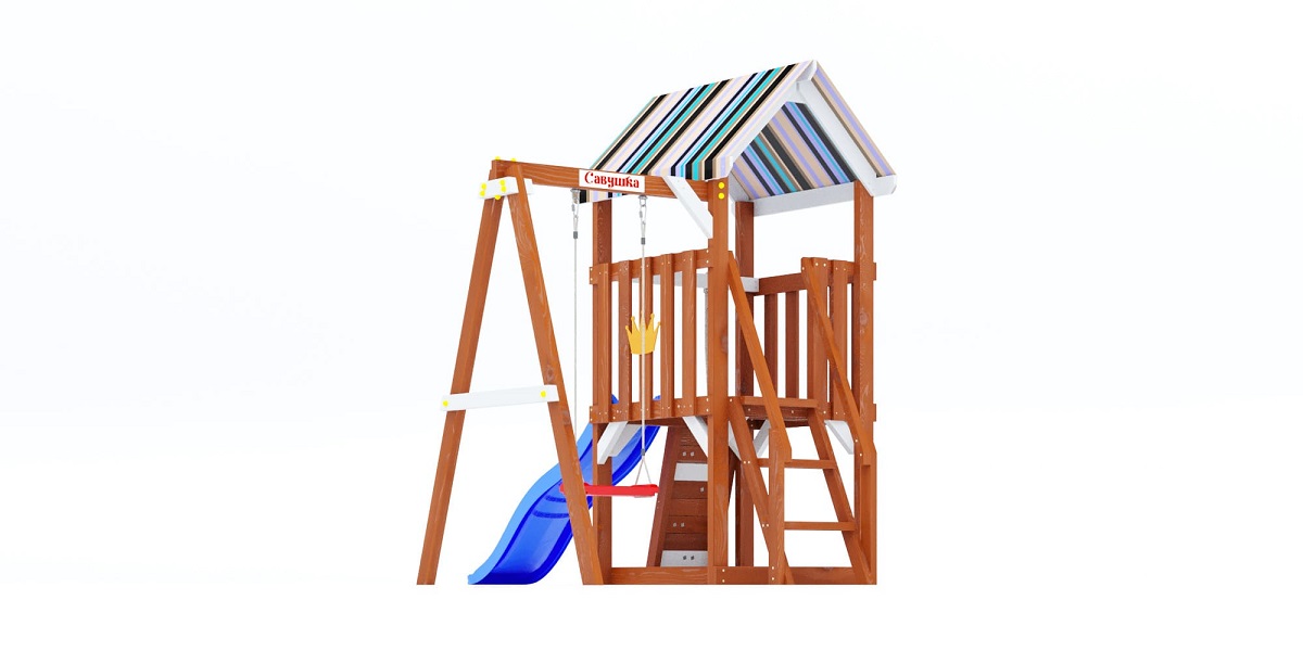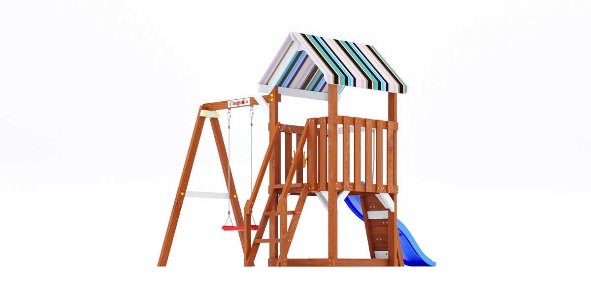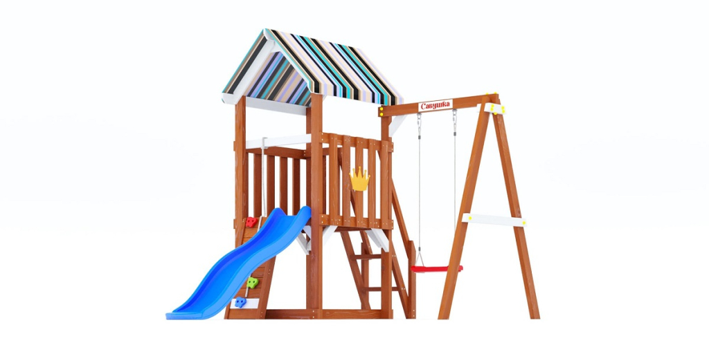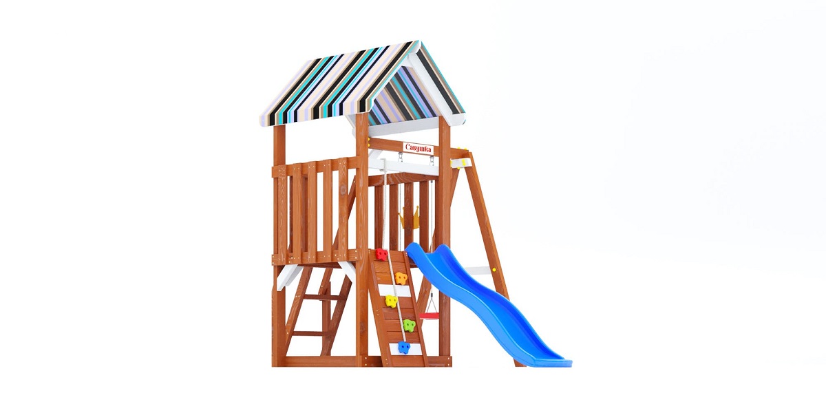 Это базовая модель серии, включающая всё самое необходимое: башню, горку, качели, скалодром. Без излишеств, но с продуманной безопасностью и устойчивой конструкцией. Подойдёт как первая площадка для малыша.