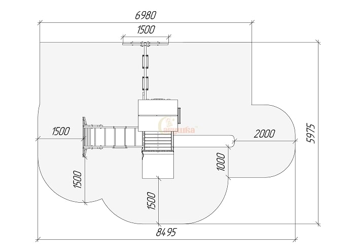 Опорные столбы из материала 45х90, качельная рама: клееный брус 70х70. Модельный ряд имеет множество возможностей по модульной кастомизации(подробности у менеджеров). Можно устанавливать горки разной длины.