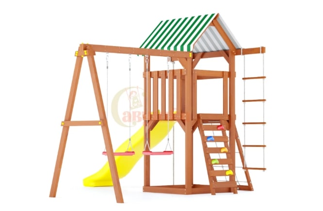 - Дерево обработано: Лакокрасочным покрытием Sherwin-Williams (Шервин-Вильямс) с разрешающим сертификатом для покрытия детских игровых площадок