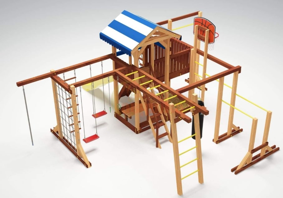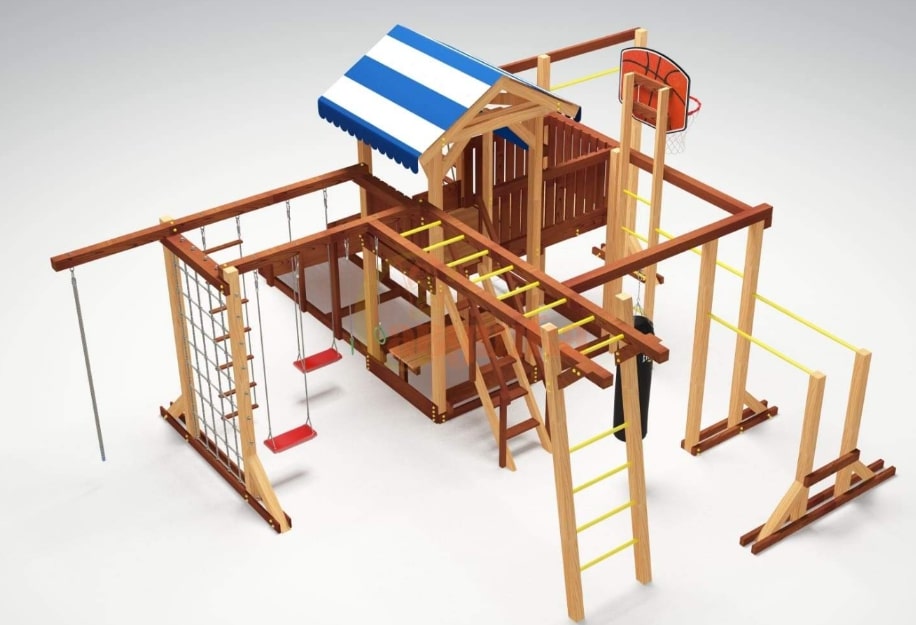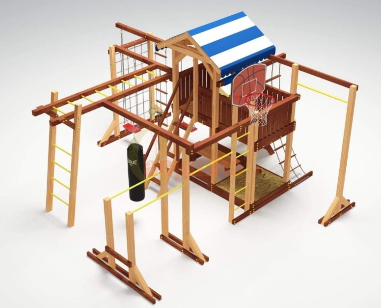 Детский спортивный комплекс выполнен из высококачественных натуральных материалов, все элементы разработаны согласно ГОСТу и надежно зафиксированы – безопасность вашего малыша обеспечена на самом высоком уровне!