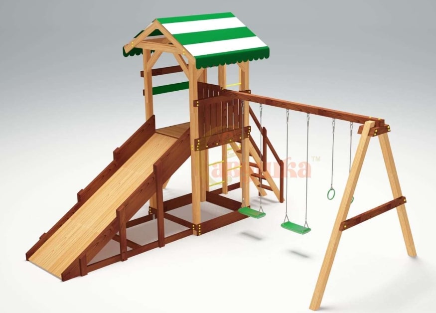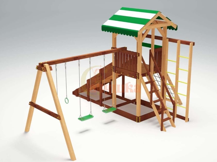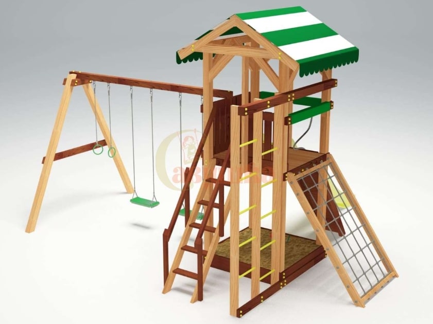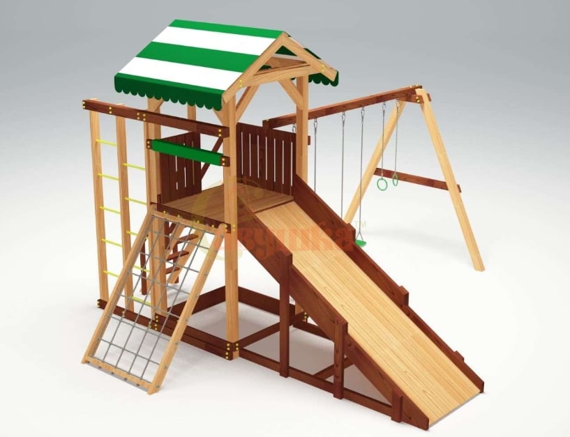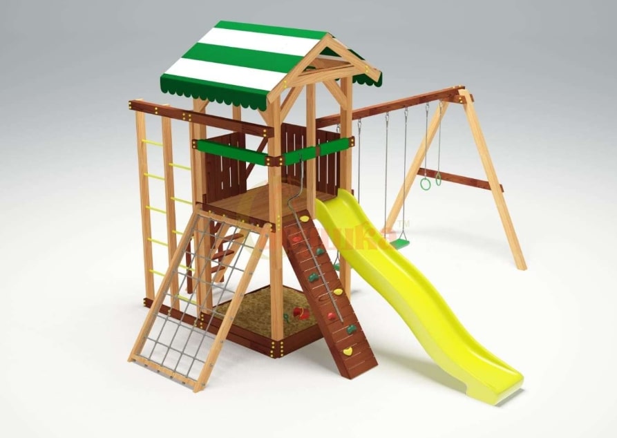 Горка, Домик (замок), Качели, Скалодром, Канат |