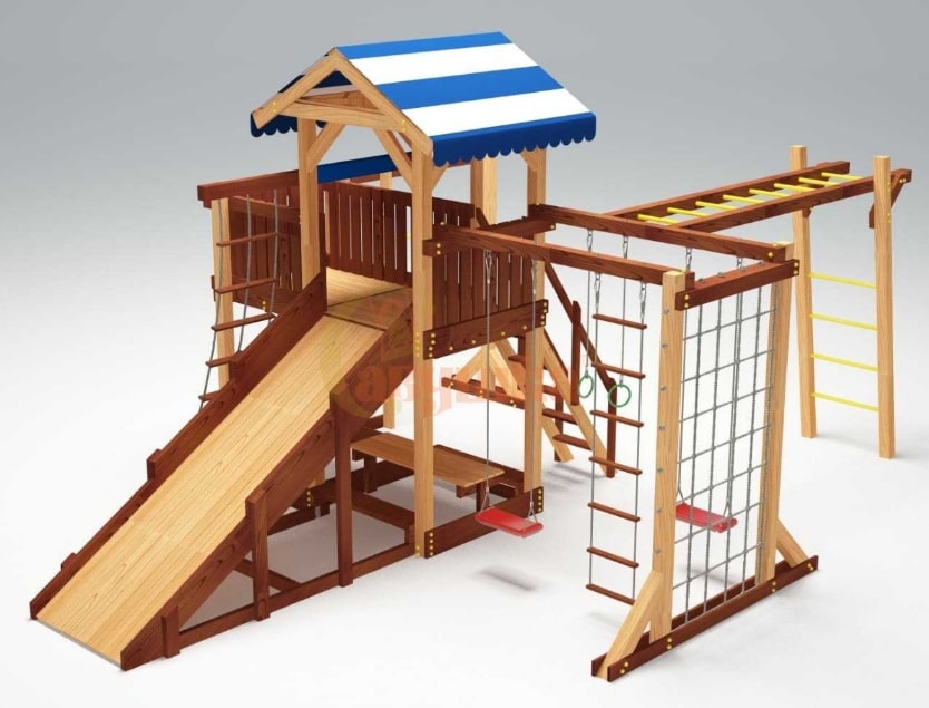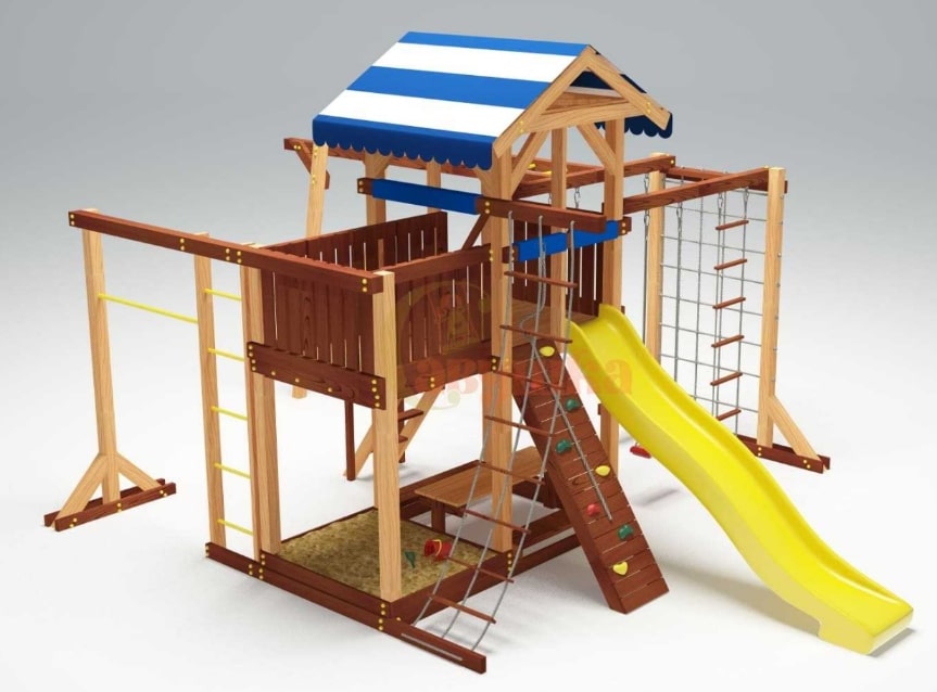 Горка, Домик (замок), Качели, Скалодром, Канат |