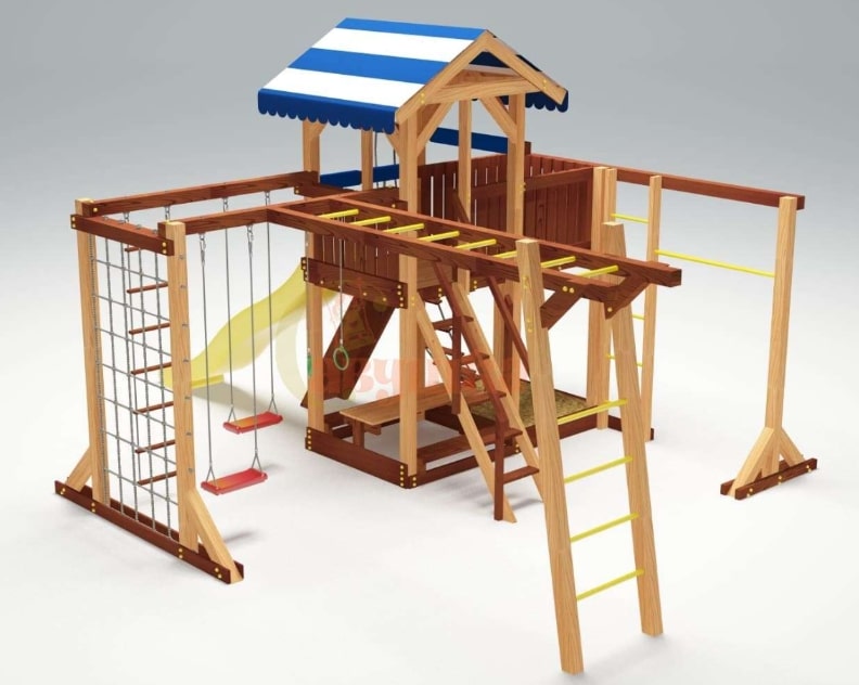 Детский спортивный комплекс выполнен из высококачественных натуральных материалов, все элементы разработаны согласно ГОСТу и надежно зафиксированы – безопасность вашего малыша обеспечена на самом высоком уровне!