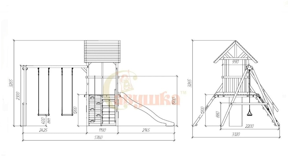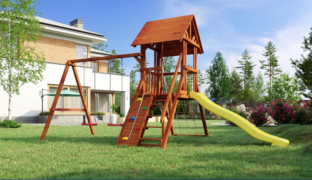 - Дерево обработано: Лакокрасочным покрытием Sherwin-Williams (Шервин-Вильямс) с разрешающим сертификатом для покрытия детских игровых площадок