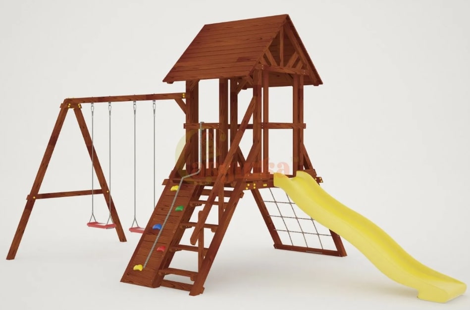 Горка, Домик (замок), Качели, Скалодром, Канат |