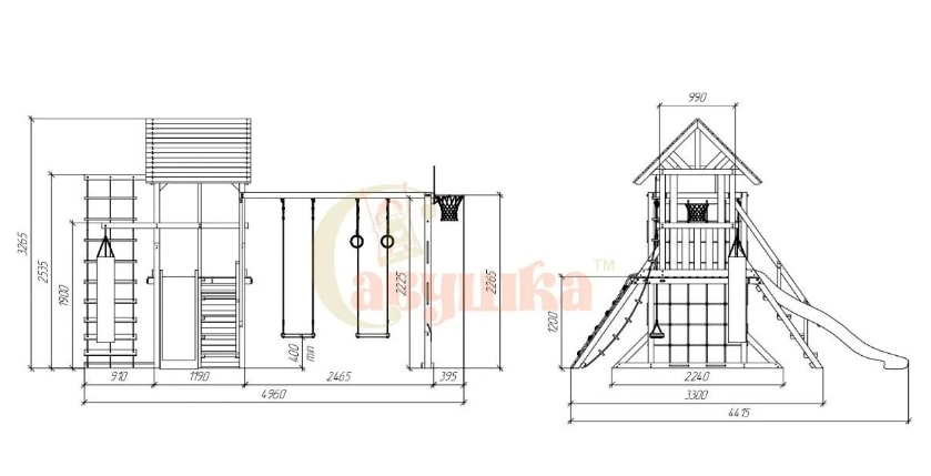 - Игровая башня с крышей создает укрытие от солнца и осадков, обеспечивая комфорт во время игр.
