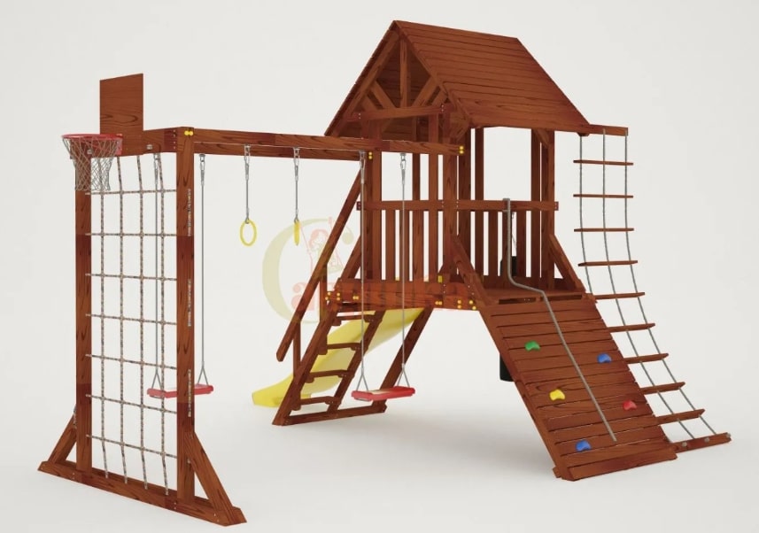 Горка, Домик (замок), Качели, Скалодром, Канат |