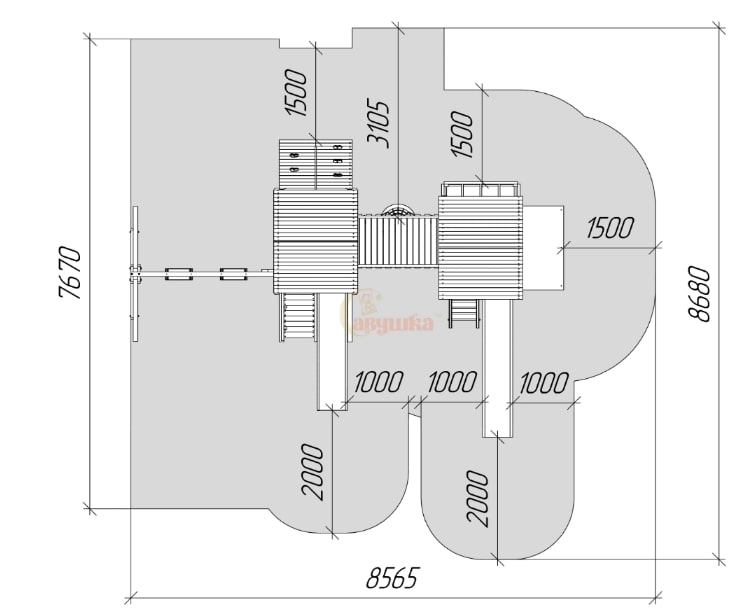 - Дерево обработано: Лакокрасочным покрытием Sherwin-Williams (Шервин-Вильямс) с разрешающим сертификатом для покрытия детских игровых площадок