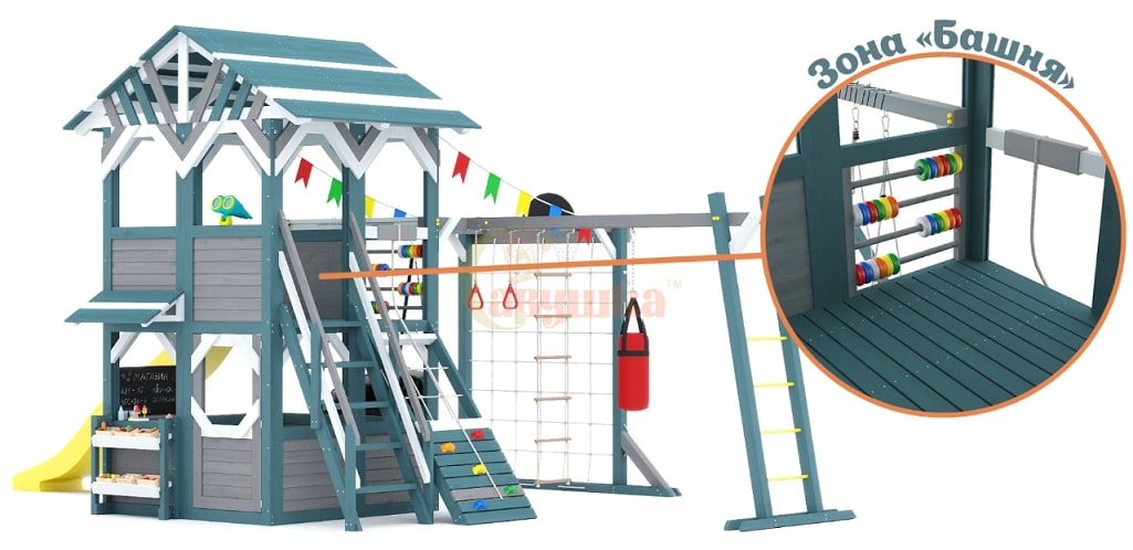 Зона «Башня» - идеальна для игр в пиратов и захватывающих спусков с горки.