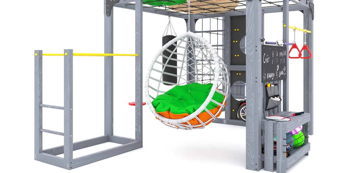 Детская площадка для дачи Савушка КУБ-2 Серый с подушками и коконом