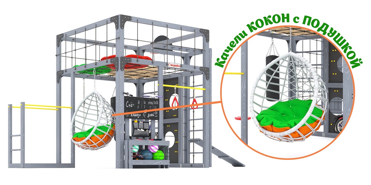 - Качели «Кокон»: комфортные подвесные качели, которые складываются для удобного хранения в зимнее время