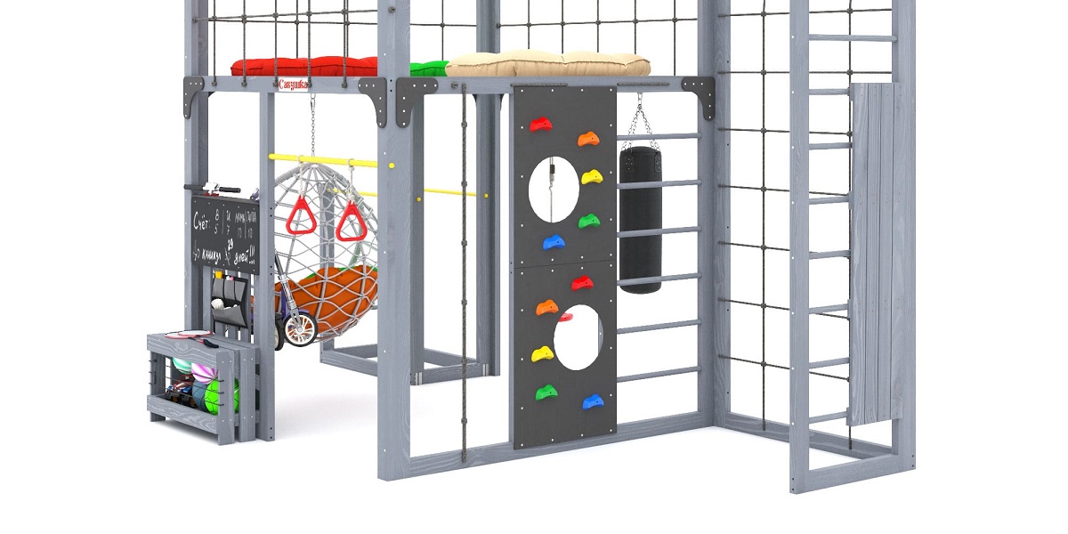 Савушка КУБ-2 с подушками и коконом в цвете Серый, это не просто игровая зона — это домашний спортивно-развивающий комплекс, созданный с заботой о физическом и эмоциональном развитии детей. Модель идеально впишется в ваш двор и будет радовать круглый год..С элегантным цветом Серый или Махагон, площадка органично впишется в любой двор, предоставив детям пространство для творческого и физического роста, а родителям – уверенность в безопасности и качестве.