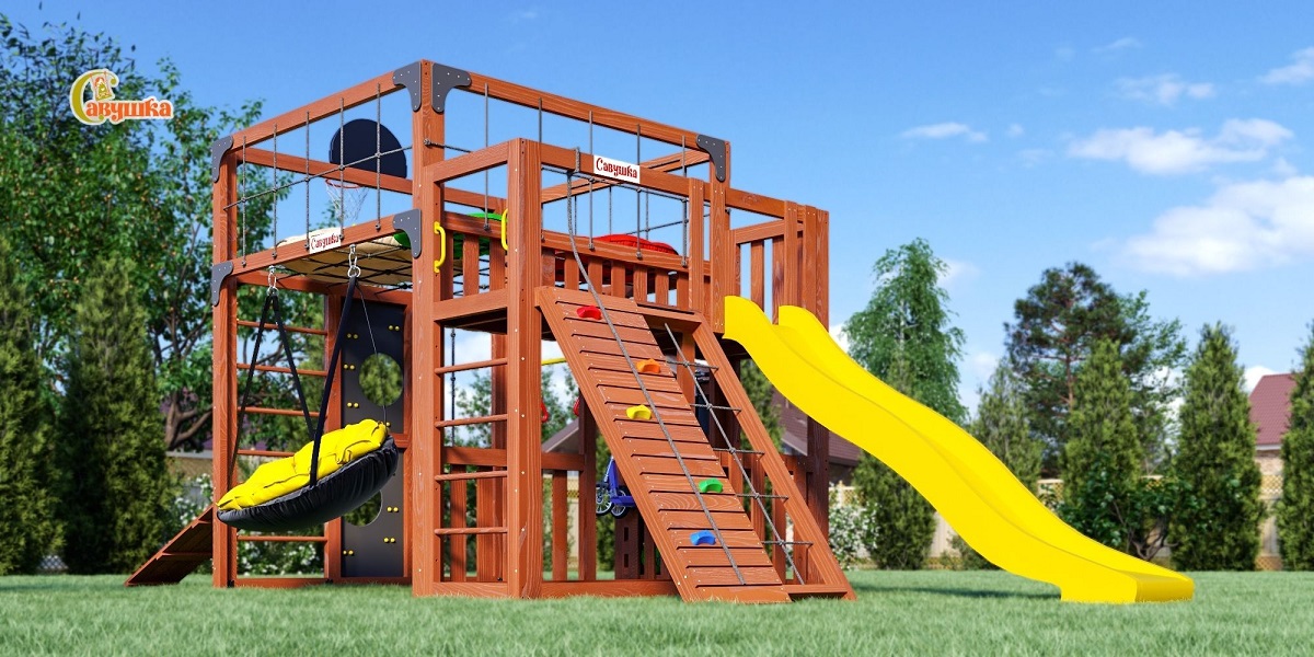 Детская площадка для дачи Савушка КУБ-3 Махагон с подушками