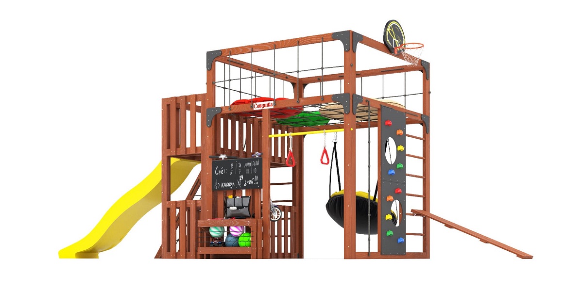 Савушка КУБ-3, это не просто игровая зона — многофункциональный спортивно-развивающий комплекс, который поддерживает физическое и эмоциональное развитие детей, а также создаёт условия для спокойного отдыха взрослых. Модель идеально подойдёт для активных игр и семейных тренировок в вашем дворе круглый год.С элегантным цветом Серый или Махагон, площадка органично впишется в любой двор, предоставив детям пространство для творческого и физического роста, а родителям – уверенность в безопасности и качестве.