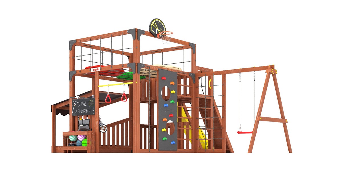 Представляем детскую игровую площадку Савушка КУБ-5 в цвете Махагон — инновационный комплекс, объединяющий спорт, игру и отдых для всей семьи. Этот многофункциональный комплекс создан для гармоничного физического развития детей и активного семейного досуга.