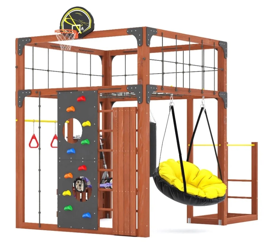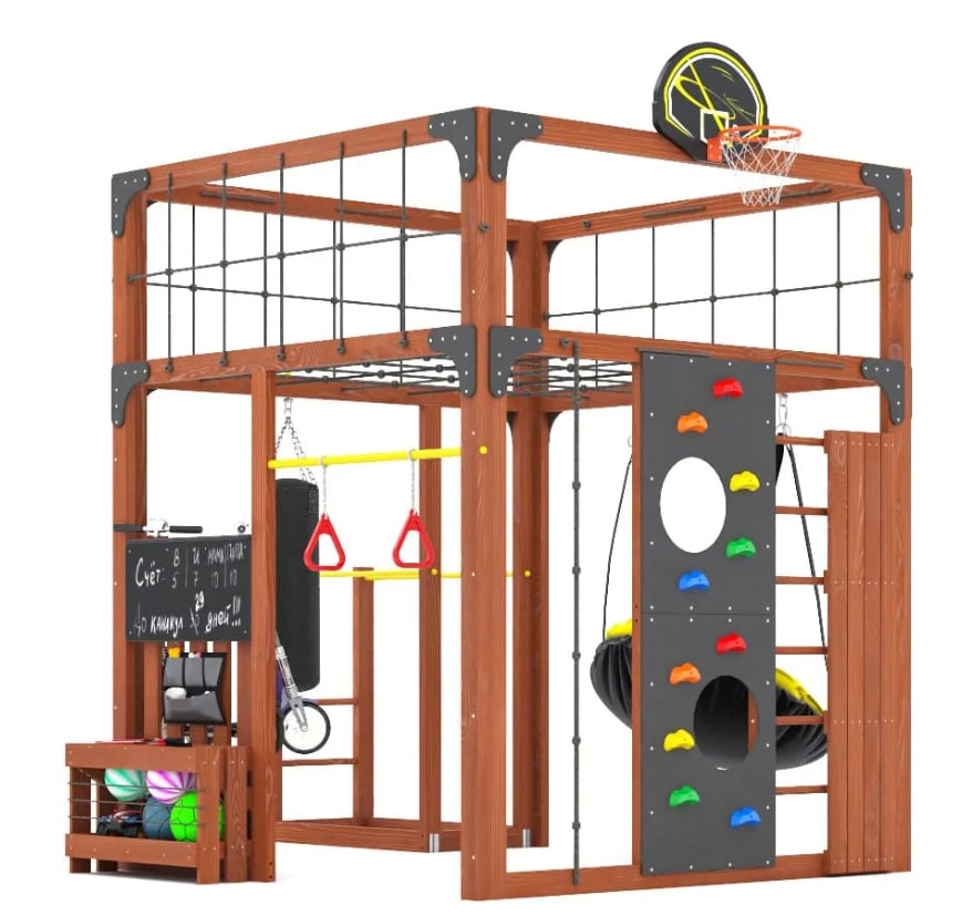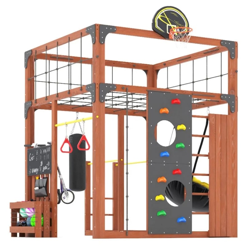Представляем детскую игровую площадку Савушка КУБ-1 в цвете Махагон— инновационный комплекс, объединяющий спорт, игру и отдых для всей семьи. Этот многофункциональный комплекс создан для гармоничного физического развития детей и активного семейного досуга.