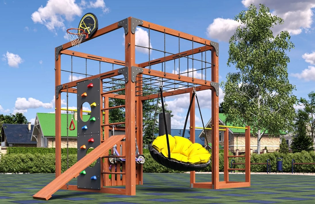- Устанавливается на газон или любое искусственное ударопоглощающее покрытие.