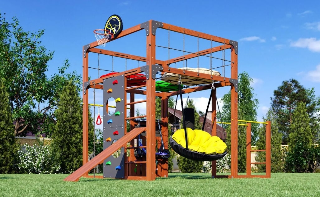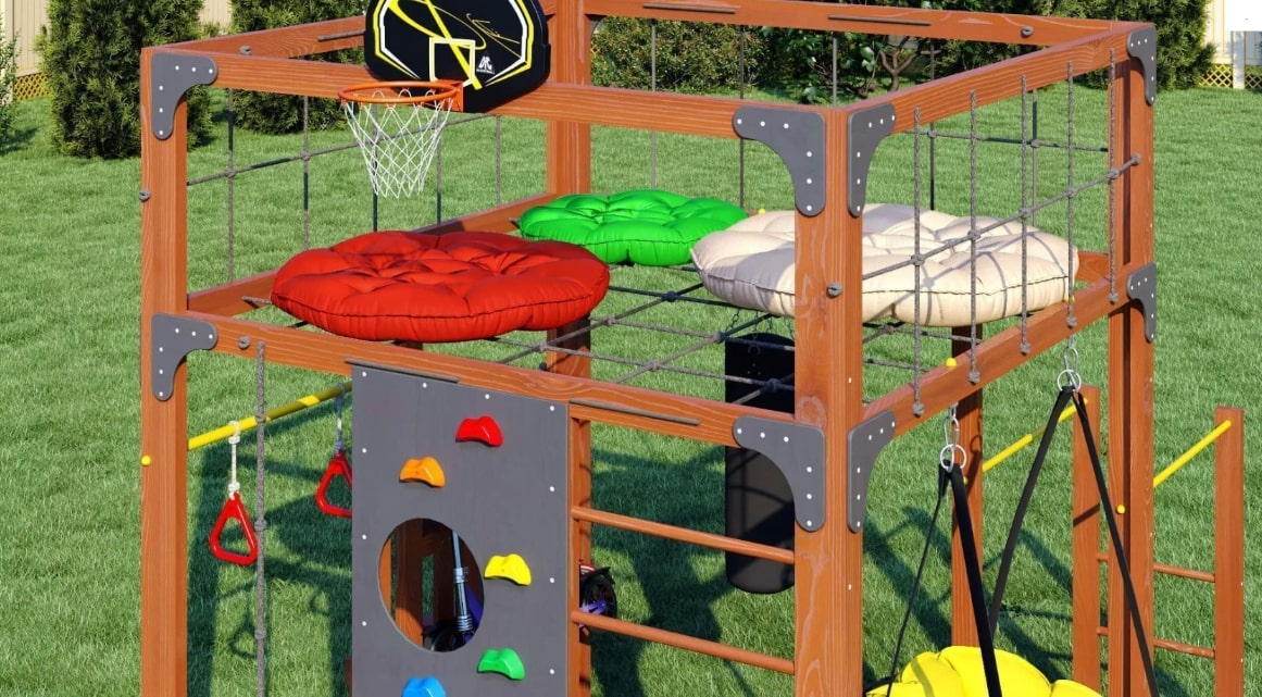 Детская спортивная площадка для дачи Савушка КУБ-1 Махагон с подушками