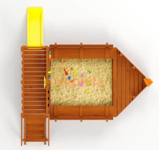 Песочница с крышками и лавочками обеспечит комфортное времяпровождение и творческие игры с песком, а меловая доска – возможность для творческих занятий, рисования и обучения.