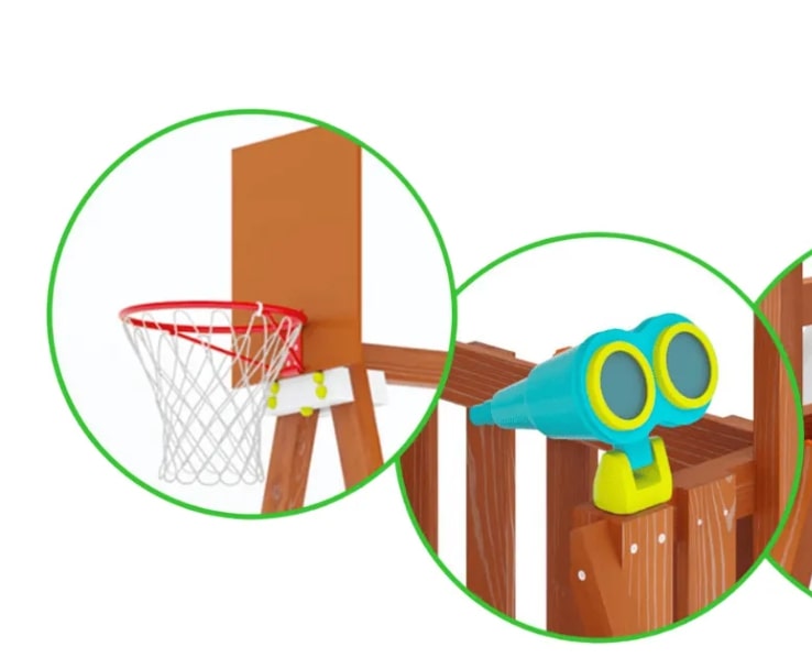- Комплектация: бинокль, штурвал, колокол-рында, баскетбольное кольцо