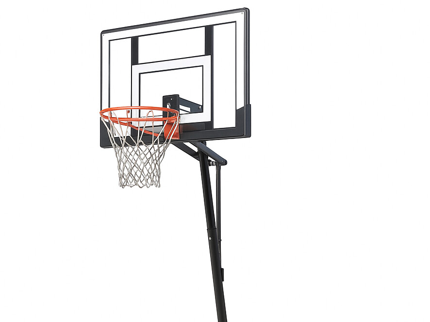 Стойка оснащена прочным щитом из ПЭТ, который выдерживает активное использование, а толщина щита обеспечивает надёжность и долговечность. В комплект входит сетка для кольца, что делает игру более реалистичной и безопасной.