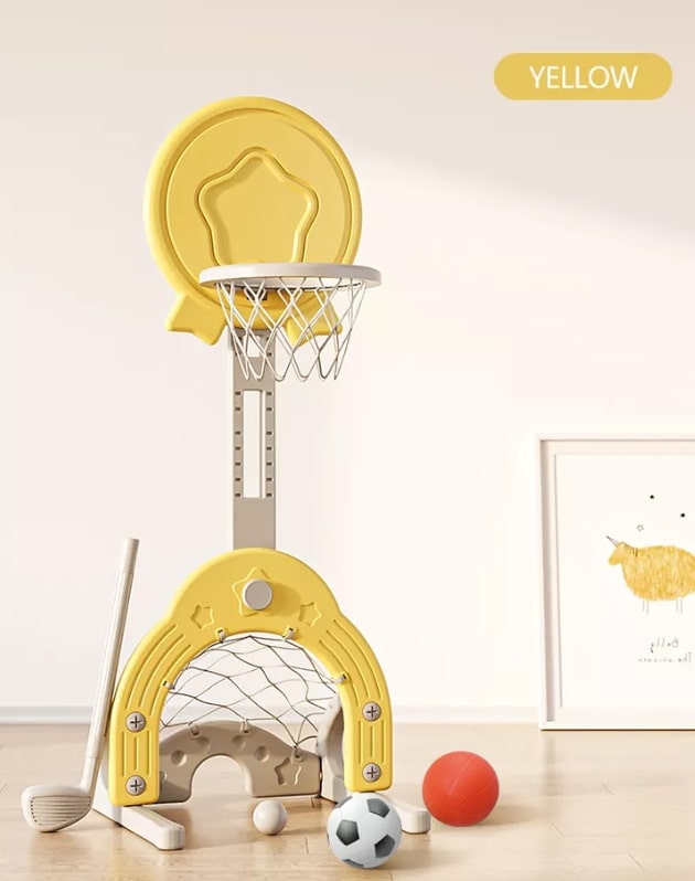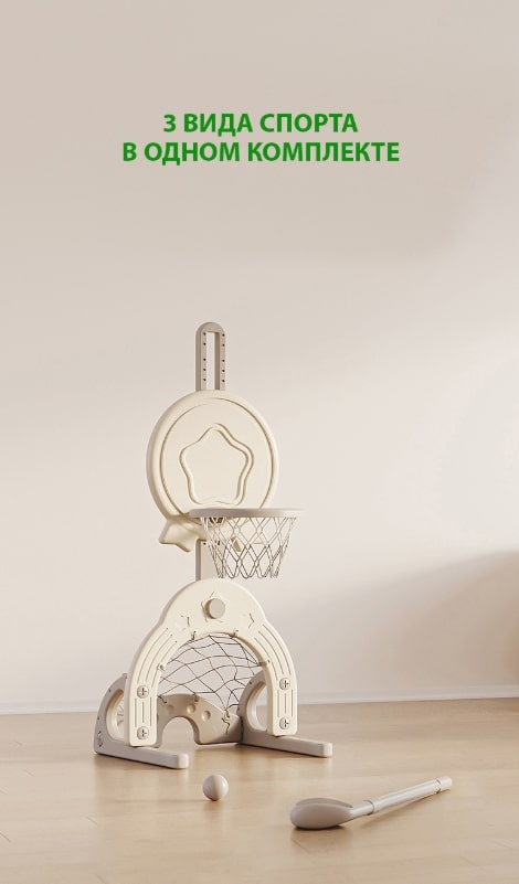Комплектация: стойка баскетбольная, луза, ворота футбольные с ячейкой для гольфа, мяч 2 шт, мяч для гольфа, клюшка для гольфа.